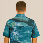 A vibrant yellow polo with bold horizontal stripes in red, blue, and black. Stylish and sporty, perfect for casual outings.
