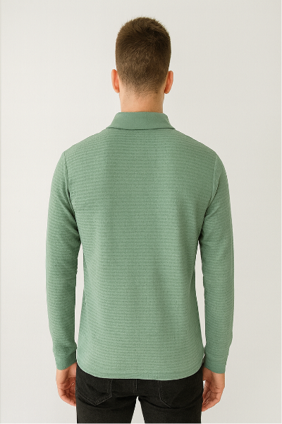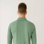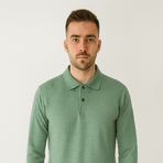A classic sage green long-sleeve polo with a textured finish and button placket. Minimalist and versatile, ideal for layering or standalone wear.