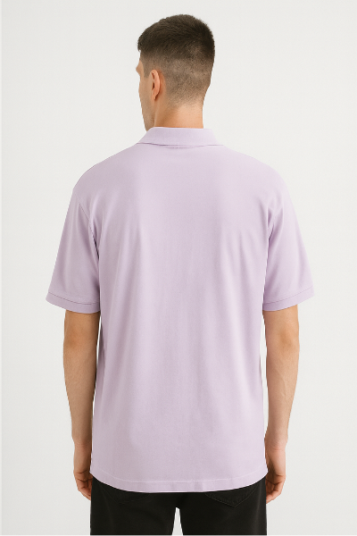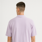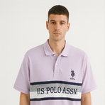 A classic lilac polo T-shirt featuring bold horizontal stripes in navy, grey, and white across the chest. Finished with the U.S. Polo Assn. logo embroidery, this polo blends casual sophistication with a sporty edge.