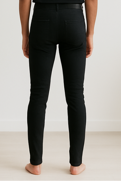 A timeless pair of black skinny jeans with a clean, minimal design. Cut for a snug fit from waist to ankle, these jeans are a versatile essential that can be styled effortlessly for casual, evening, or smart-casual looks.