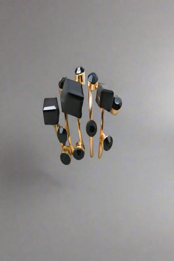 • Geometric Black Crystal Stack Ring Set