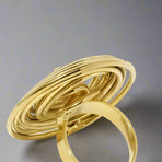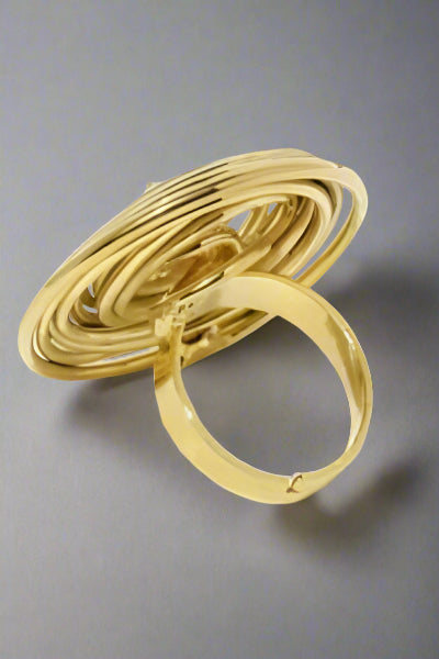 A contemporary adjustable gold ring featuring layered geometric oval designs for a bold, minimalist statement.