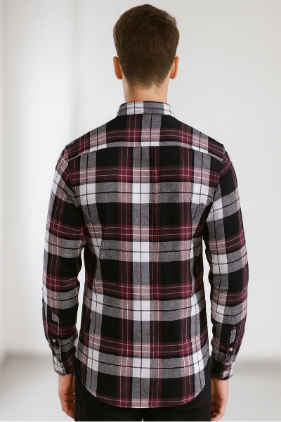 Burgundy & Grey Checked Shirt
