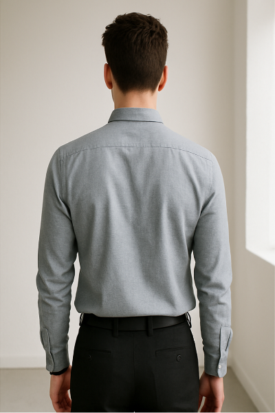 A timeless plain gray full-sleeve shirt with a chest pocket, suitable for both formal and casual wear.
