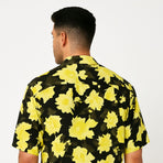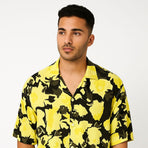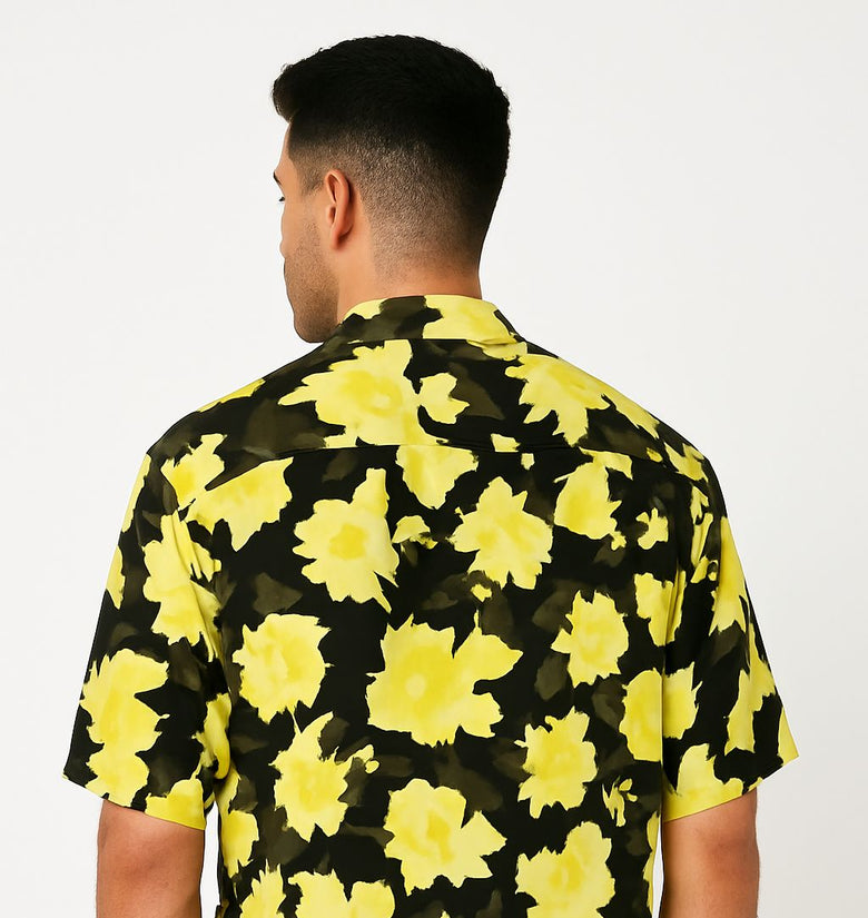 Make a bold style statement with this vibrant yellow and black floral printed shirt. Crafted from lightweight fabric, this short-sleeve shirt ensures all-day comfort while keeping you effortlessly stylish. Designed with a relaxed fit, button-down front, and a classic spread collar, it’s perfect for casual outings, vacations, or beachwear. Pair it with jeans or shorts for a trendy, laid-back look.