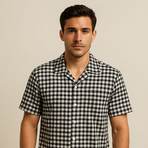 Stay sharp and stylish with this classic black and white checkered Cuban collar shirt. Featuring a timeless gingham pattern, this short-sleeve shirt is crafted from soft, breathable fabric for all-day comfort. Its relaxed fit, button-down front, and open Cuban collar make it perfect for both casual and semi-formal occasions. Pair it with black trousers for a polished look or with jeans/shorts for an easy weekend vibe. A versatile must-have piece that adds a touch of effortless charm to any wardrobe.