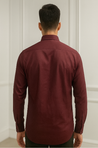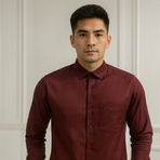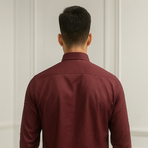 A solid maroon full-sleeve shirt featuring a subtle textured pattern and a chest pocket. Designed with a sharp collar and button-down closure, this shirt blends elegance and minimalism, perfect for both office and evening wear.