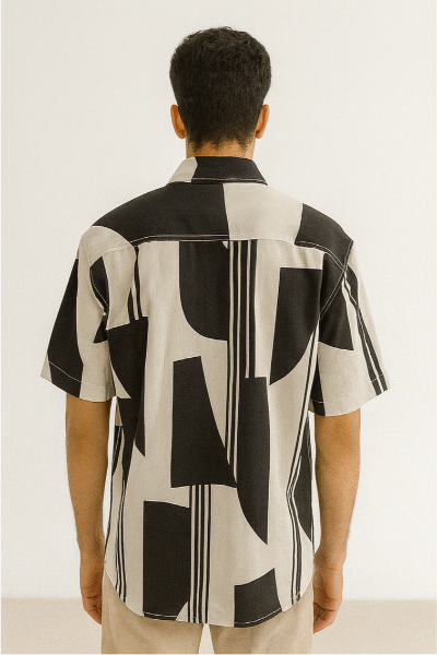 • Monochrome Block Print Down-Shoulder Shirt