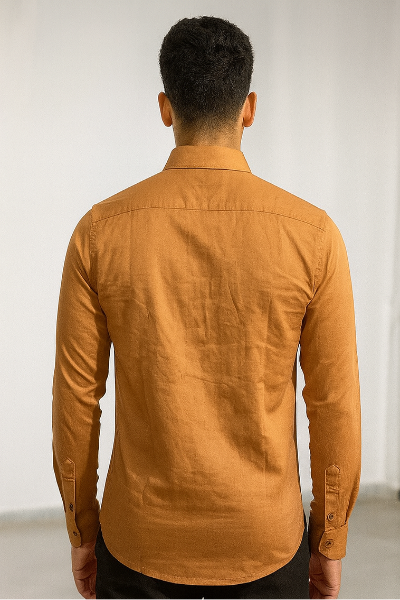 A mustard full-sleeve shirt crafted with a sleek button-down design and a single chest pocket. Its bold color makes it ideal for casual outings and weekend wear.
