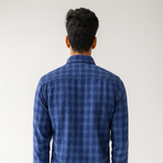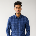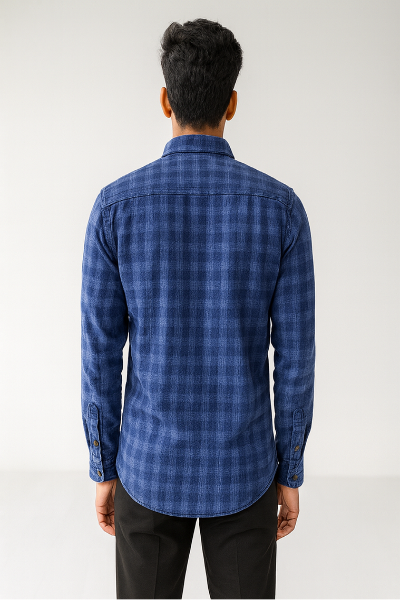 A classic navy blue checked shirt with a soft flannel texture. Featuring dual chest flap pockets and button closure, this shirt brings timeless casual style with comfort.