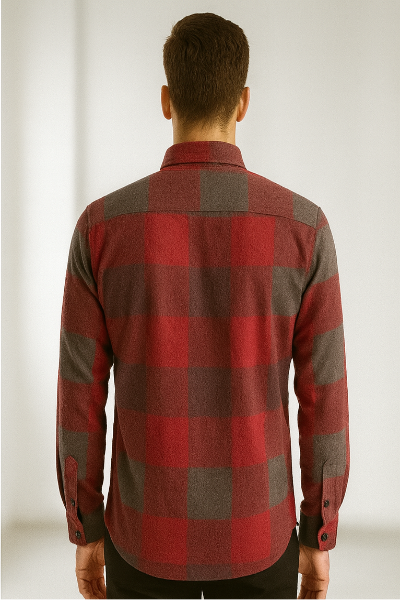 A timeless red and grey checkered flannel shirt with dual chest flap pockets. Its soft fabric and structured design make it ideal for layering or wearing solo in casual settings.