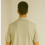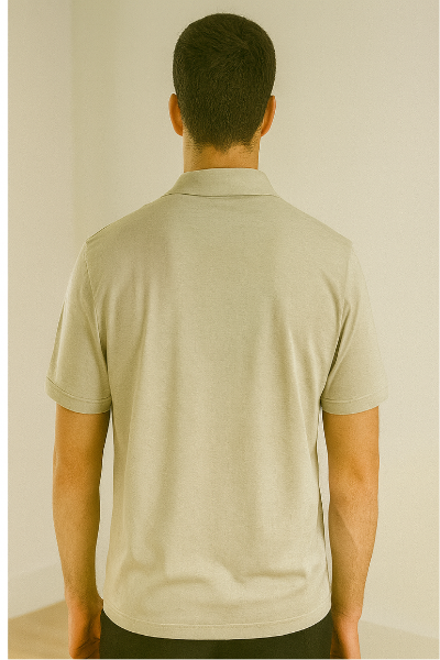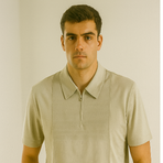 A minimalistic beige polo t-shirt with a modern half-zip closure instead of traditional buttons. Designed with subtle textured panel detailing on the front, this piece offers a refined and contemporary casual look