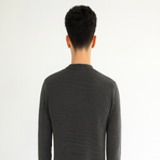A modern two-tone T-shirt with a half-button Henley neckline. The yellow upper pairs with a black lower section, featuring bold motivational text and graphic signature print.