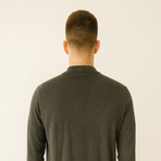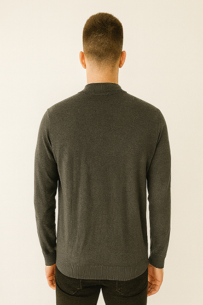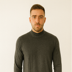 A sleek and sophisticated dark grey turtleneck sweater with a smooth knit texture. A versatile choice for smart winter outfits.