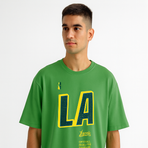 This bright green crew-neck T-shirt features a bold "LA" Lakers-inspired print in yellow and navy on the chest. Crafted from breathable cotton with a relaxed fit, it’s perfect for casual everyday wear and sports-inspired street style.