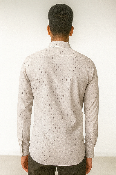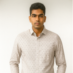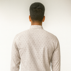A light beige shirt with minimalistic all-over dotted prints, tailored with a pointed collar and button closure. A refined pick for understated yet stylish everyday wear.