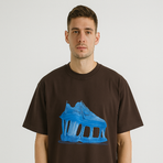 Brown Graphic T-Shirt with Blue Sneaker Print