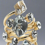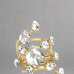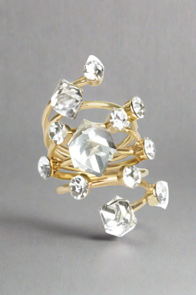 A luxurious spiral ring with multiple clear crystals set in gold. Its eye-catching design adds instant elegance to evening outfits.