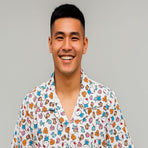 Add a fun and quirky twist to your casual wardrobe with this white Cuban collar shirt featuring a playful all-over cartoon print. The lightweight fabric ensures comfort, while t...