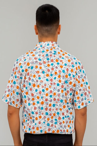 Add a fun and quirky twist to your casual wardrobe with this white Cuban collar shirt featuring a playful all-over cartoon print. The lightweight fabric ensures comfort, while the relaxed fit and half sleeves make it perfect for laid-back outings. Styled with colorful character motifs in orange, blue, pink, and brown, this shirt is a statement piece that brings cheerful energy to your look. Pair it with jeans, shorts, or chinos for an effortlessly cool and vibrant style.