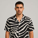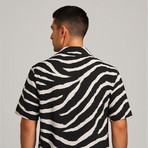 Make a bold fashion statement with this black short-sleeve shirt featuring a striking zebra print design. Crafted with a relaxed fit, spread collar, and button-down closure, it adds a modern edge to your casual wardrobe. Perfect for parties, vacations, or weekend outings, this shirt pairs effortlessly with jeans or chinos for a confident, standout look.