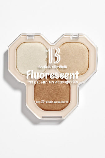 A three-shade highlighter palette in golden and champagne tones. Compact design for radiant glow on cheekbones, brow bone, and more.