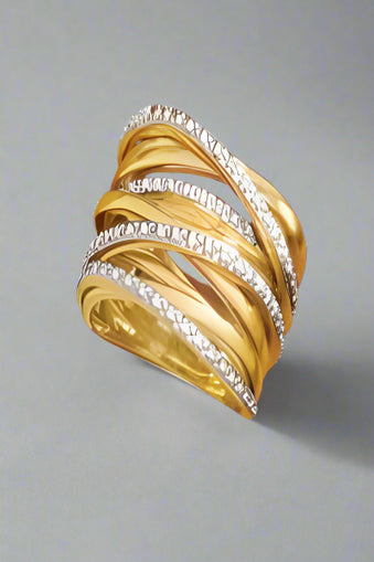 Gold & Diamond Criss-Cross Band Ring