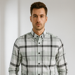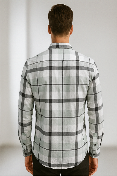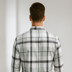 A crisp shirt with a bold checkered pattern in grey, black, and white. Featuring a classic button-down design with a chest pocket, it’s a versatile pick for smart-casual dressing.