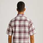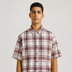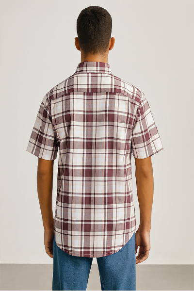 A timeless short-sleeve shirt with bold maroon and white plaid checks. Finished with a button-down front, this shirt combines classic style with everyday comfort, making it versatile for casual and semi-formal looks.