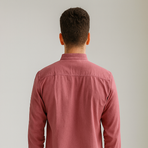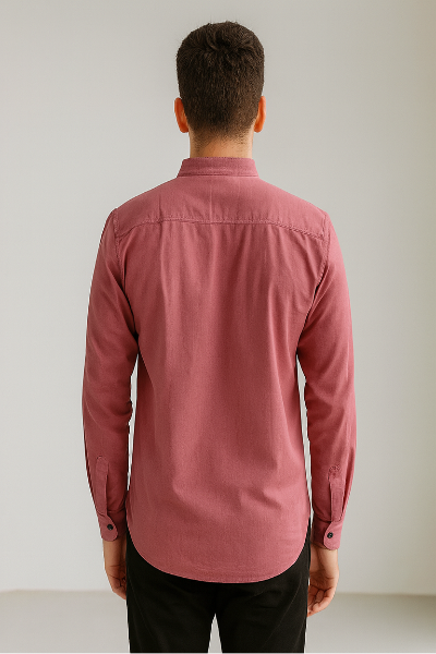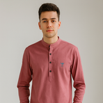 A modern maroon shirt with a mandarin collar and half-button placket. Subtle embroidered chest logo adds detail to this minimalist yet trendy design.