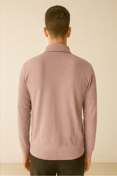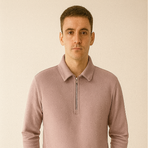 This mauve long-sleeve polo comes with a minimal textured knit and a half-zip collar. A sleek and contemporary choice for versatile styling.