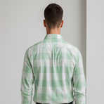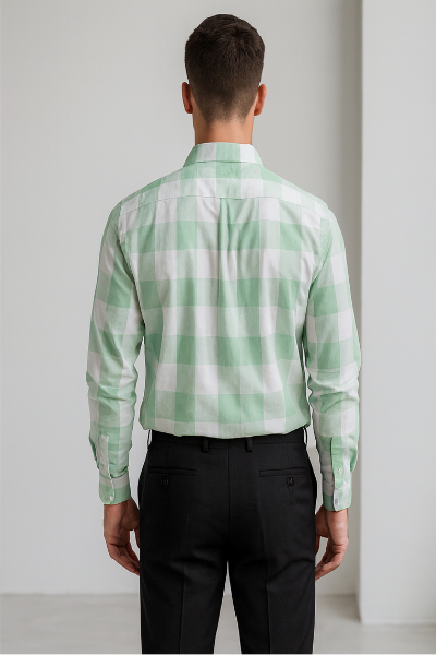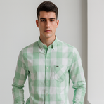 A fresh mint green and white checked shirt designed with a button-down collar and chest pocket. Light and breathable, making it perfect for spring and summer casual wear.