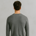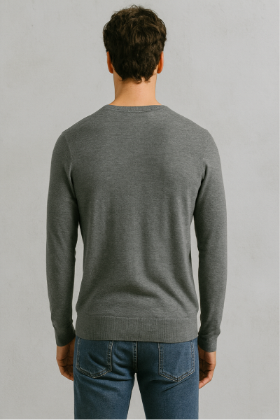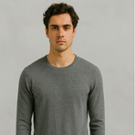 A classic plain grey crew-neck sweater with a clean and timeless design. A wardrobe essential for versatile styling.