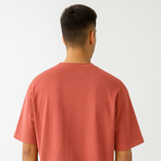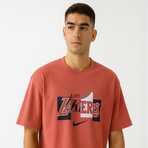A statement red crew-neck T-shirt featuring a bold Los Angeles Lakers logo print across the chest. Made from soft cotton, it offers a comfortable fit with a sporty streetwear vibe, making it ideal for casual looks.