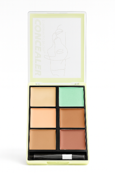 A versatile concealer palette with multiple shades, including a green corrector for redness. Perfect for contouring, highlighting, and spot concealing with a creamy blendable formula.