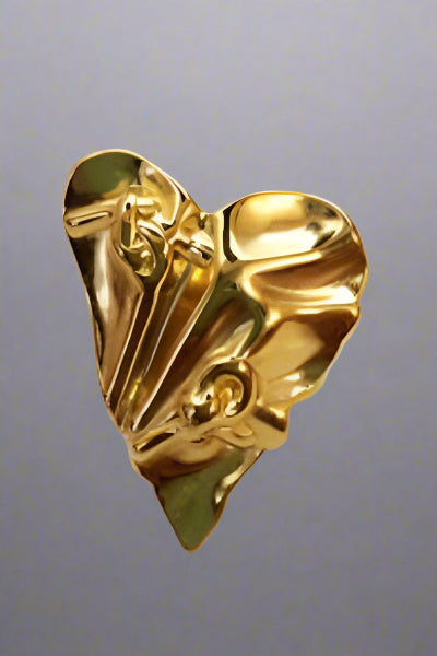 A high-fashion gold ring with a unique folded heart design, making it a standout piece for special occasions.